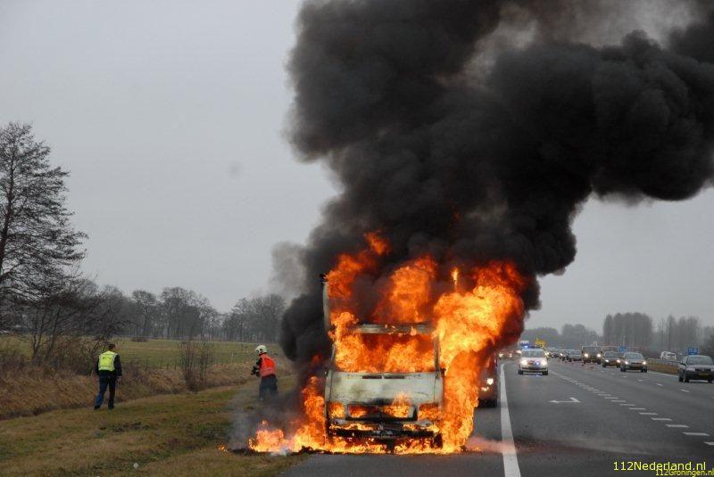 Op de A7 ter hoogte van Nuis is even voor half een vanmiddag een bestelbus