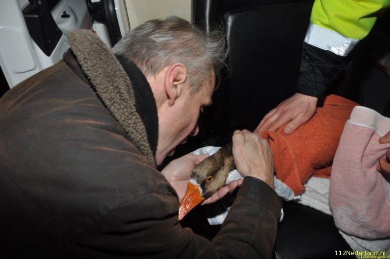 Een gans is vanmiddag om 17:15 uur gered door de brandweer en de Dierenambulance Groningen.