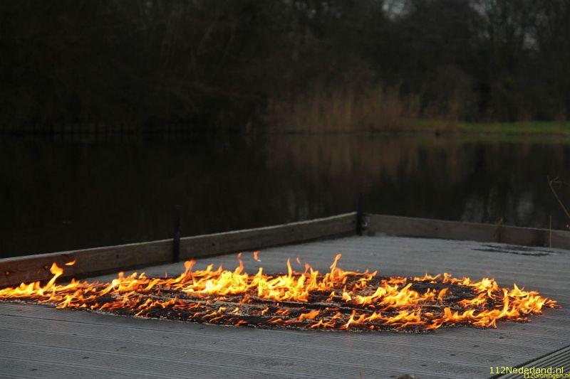Een steiger aan de Poldervaart in Schiedam is dinsdagmiddag in brand gestoken. Kort voor drie