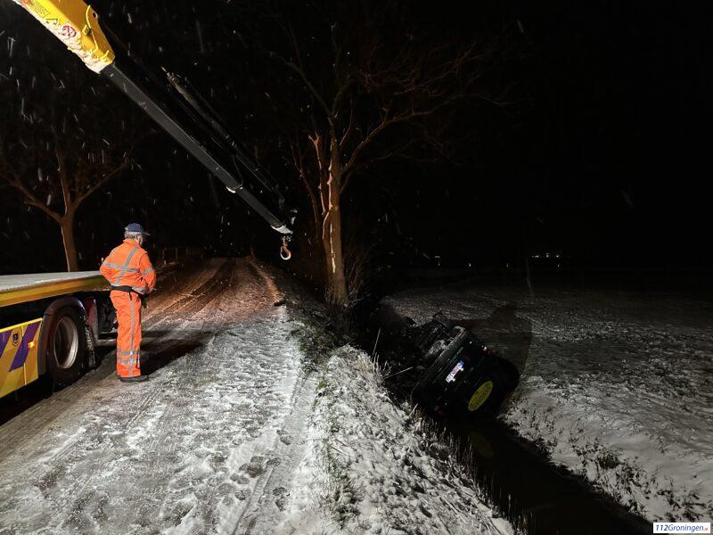 Gladheid: Auto raakt in sloot nabij Onderdendam (Video)