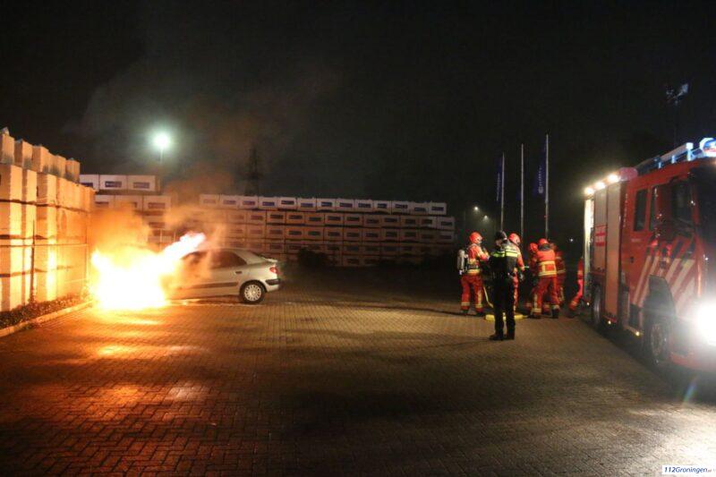 Auto in lichterlaaie aan de Adriaan Tripweg in Veendam