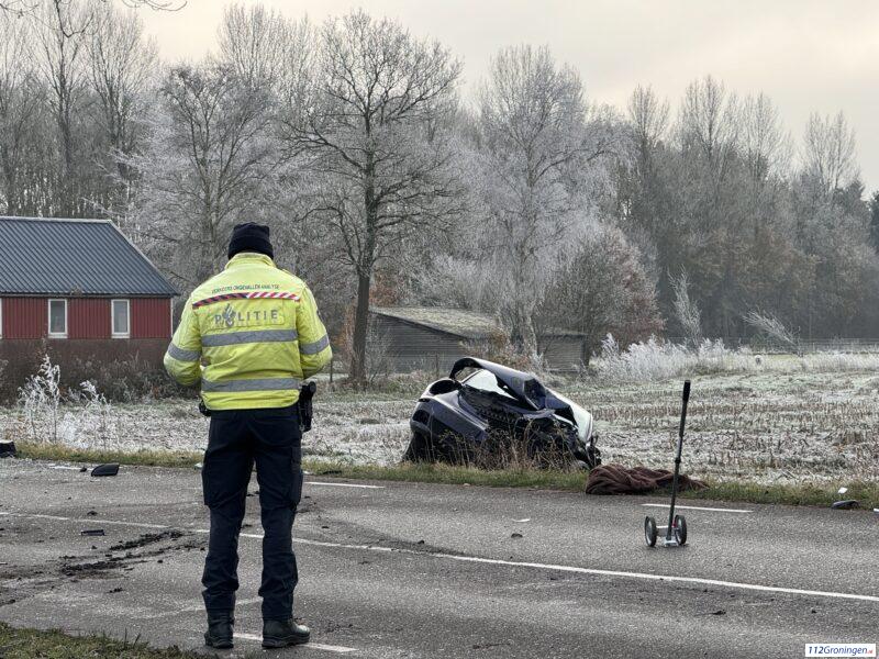 Frontaal ongeval bij Harkstede; bestuurder raakt zwaargewond (2x Video)