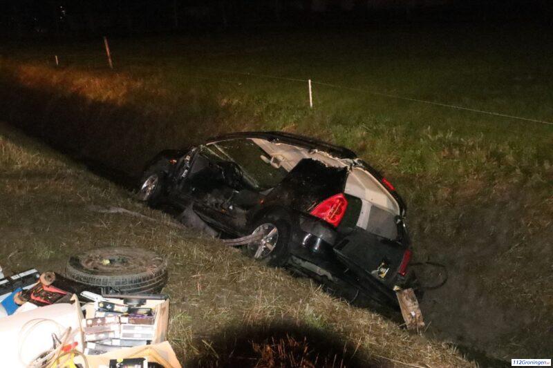 Auto raakt van de weg bij Marum, twee gewonden (Video)