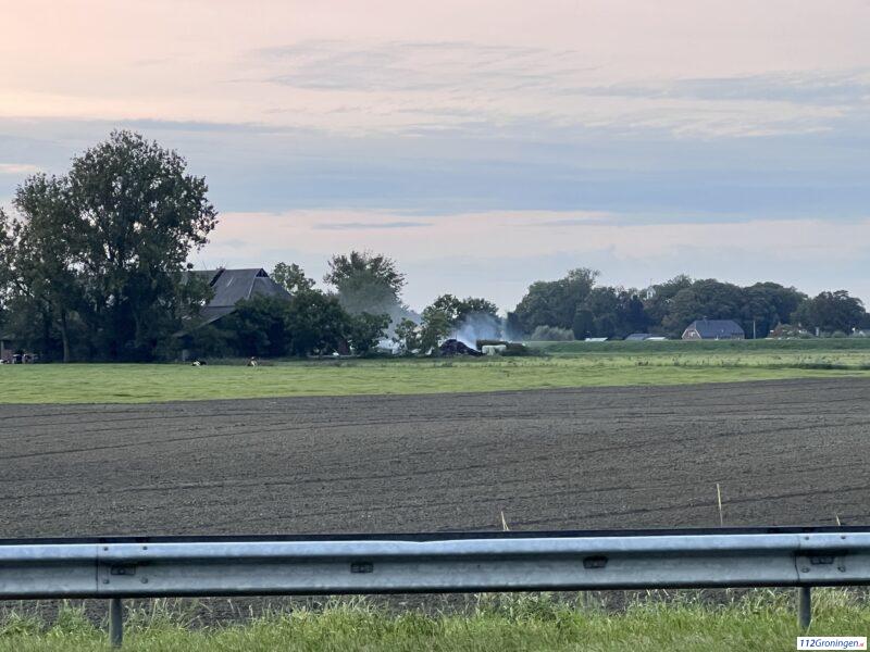 Mestbult al dagen in brand op de Eilandsweg bij Appingedam (update)