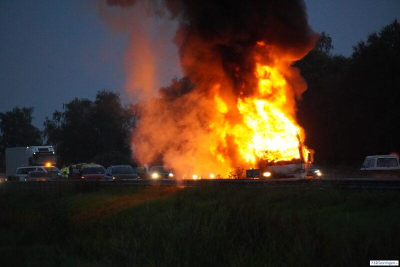Haren – Zondagavond kwam er een melding van een brand wegvervoer op de A28 ter
