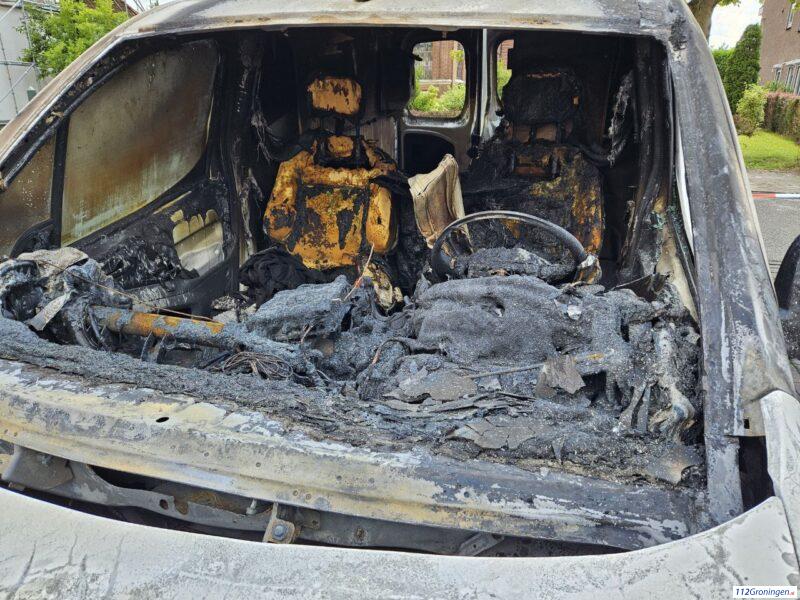 Bestelbus zwaar beschadigd door brand