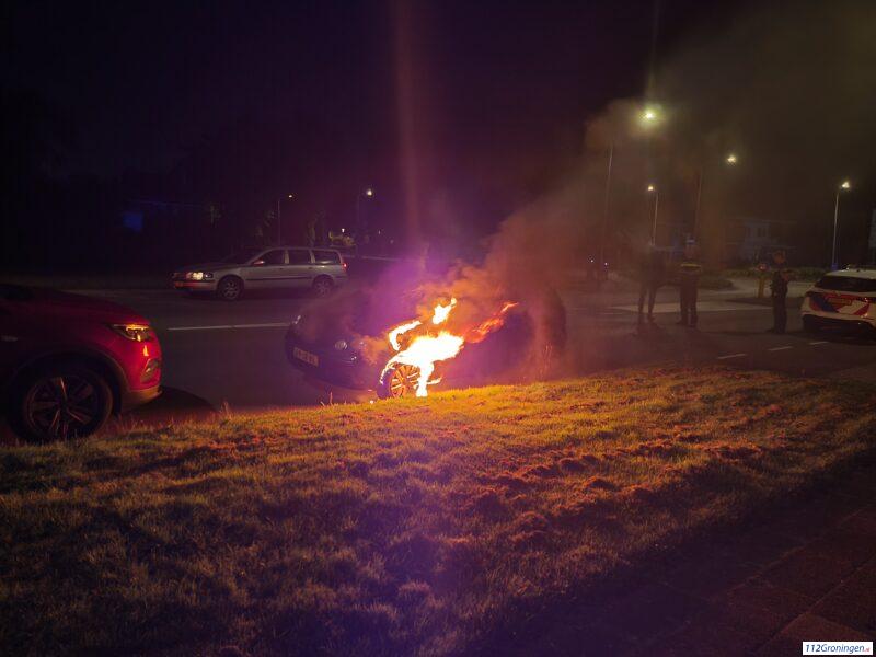 Marum – Zondagmiddag vatte een personenauto vlam op de A7 bij Marum, in de richting