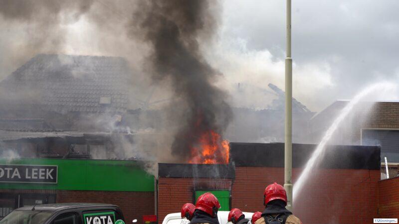 Zeer grote brand in Leek bij Kota is `brand meester`, nablussen begonnen (Video)