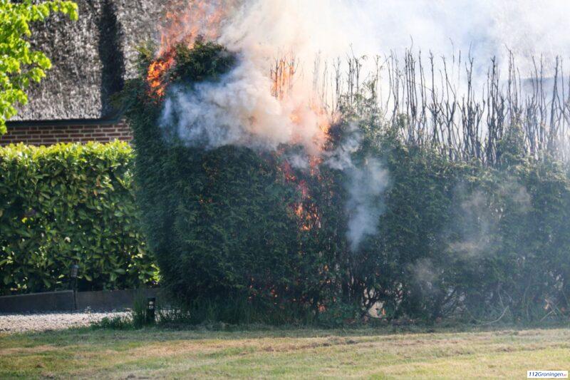 Winschoten – Zaterdag rond de middag is er brand ontstaan in een coniferenhaag aan de