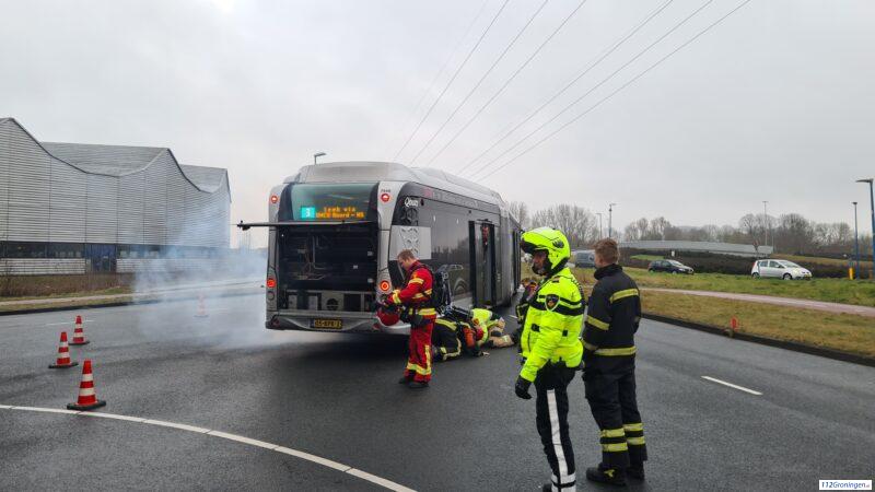 Groningen – Een elektrische lijnbus van Qbuzz is maandagmiddag rokend tot stilstand gekomen op het