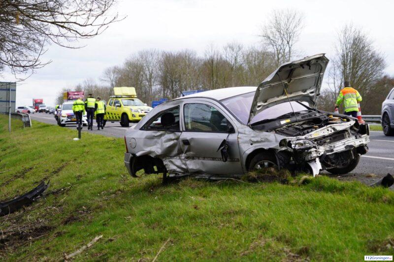 Auto zwaar beschadigd na eenzijdige aanrijding op de A7 (update)