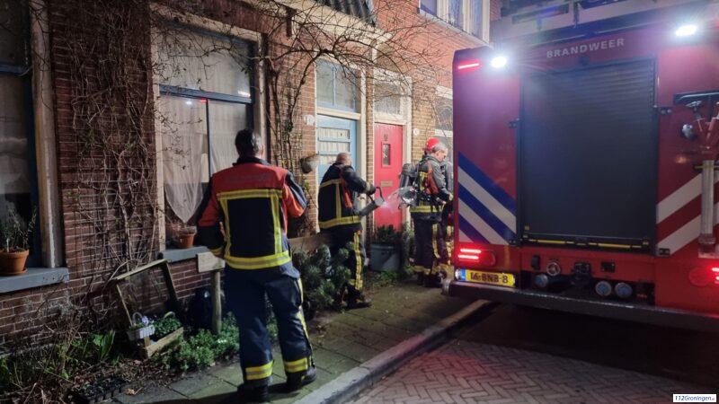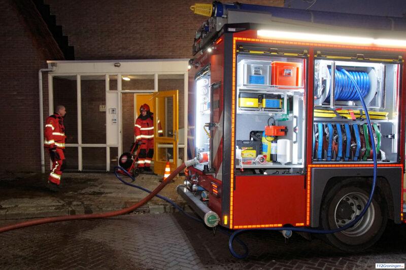 Brandweer forceert voordeur vanwege afgaande rookmelder in woning in Groningen