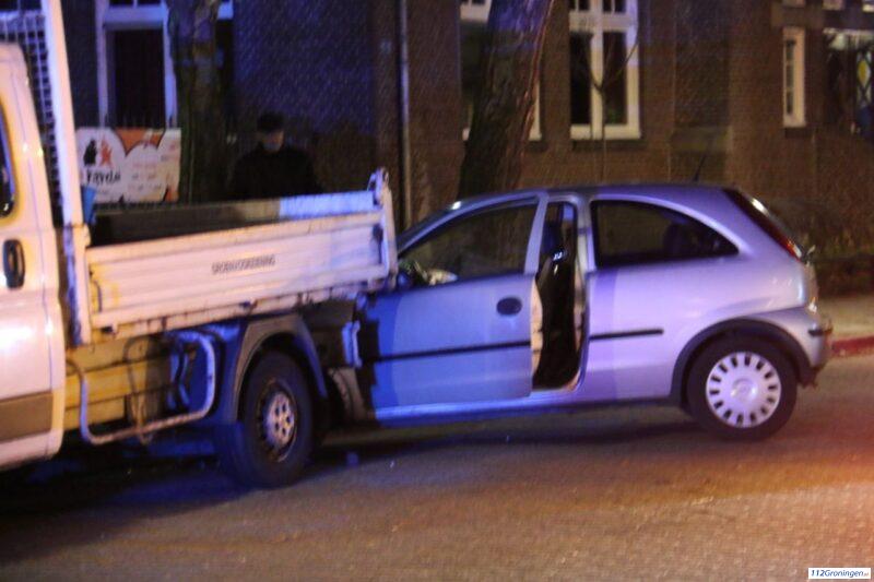 Auto botst tegen geparkeerde bestelbus in Veendam