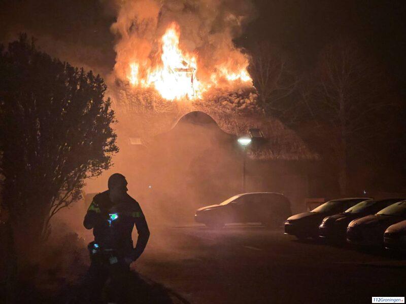 Grote uitslaande brand verwoest rietgedekt pand Appingedam (Video)