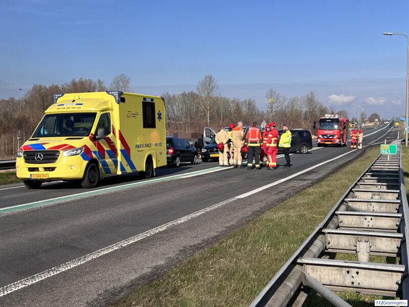 Mini kettingbotsing op de N33 bij Appingedam, 1 gewonde