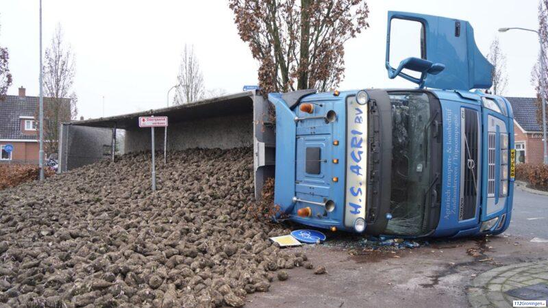Vrachtwagen`vol met bietn` gekanteld bij Zevenhuizen (Video)