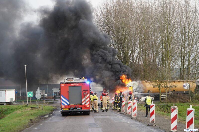 Garmerwolde – Op de Grasdijkweg in Garmerwolde is donderdagmiddag een duitse vrachtwagen in brand gevlogen.
