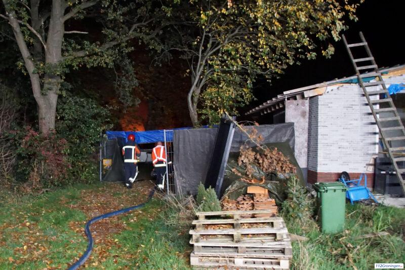 Felle uitslaande garage/schuurbrand achter woning AE-weg in Woldendorp onder controle (Video)
