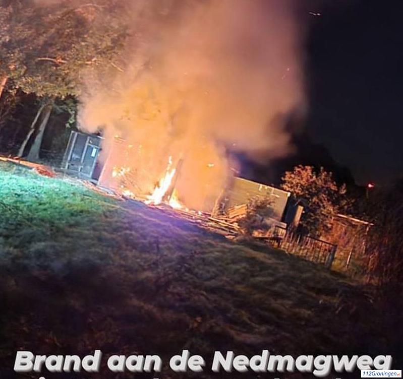 Veendam – Zondagavond is aan de Nedmagweg in Veendam een schuur volledig verloren gegaan. Niet