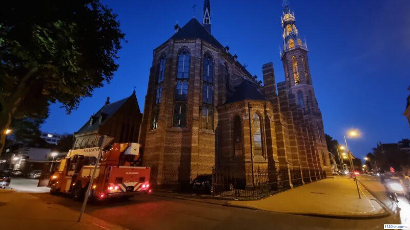 Brandweer controleert dak van Sint Jozefkerk nadat lichtkogel uiteen spat