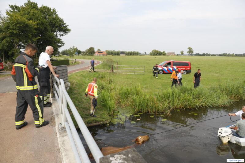 Brandweer trekt koe uit water na zwemtocht in Enumatil