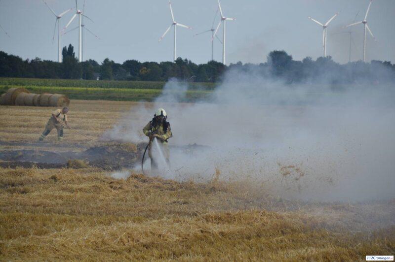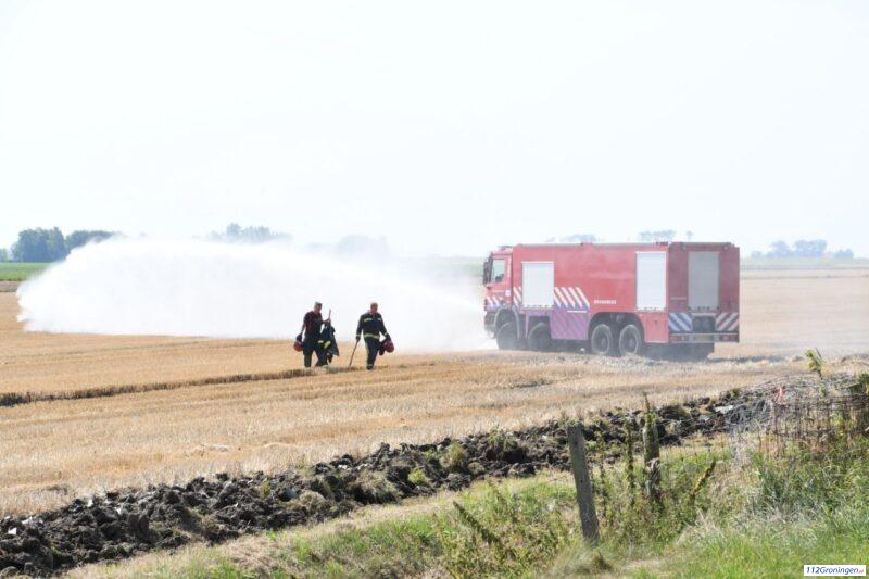 Groot stuk akker in de brand in Termunten, brandweer zet waterkanon in