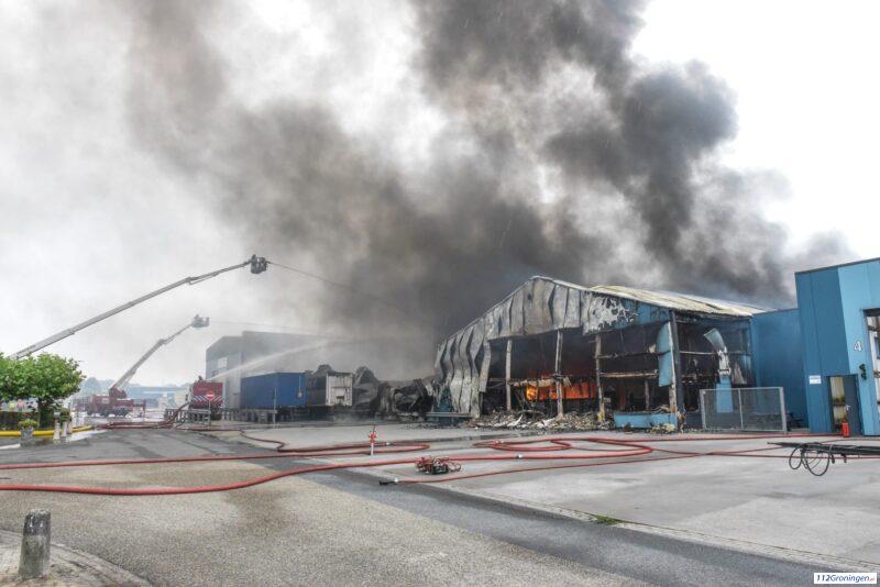 Grote brand bij recyclingsbedrijf in Leek onder controle, schade is enorm (video)