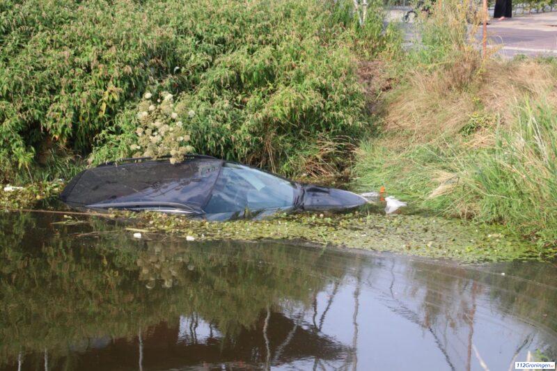 Auto rolt vanaf oprit achteruit het water in bij Sappemeer
