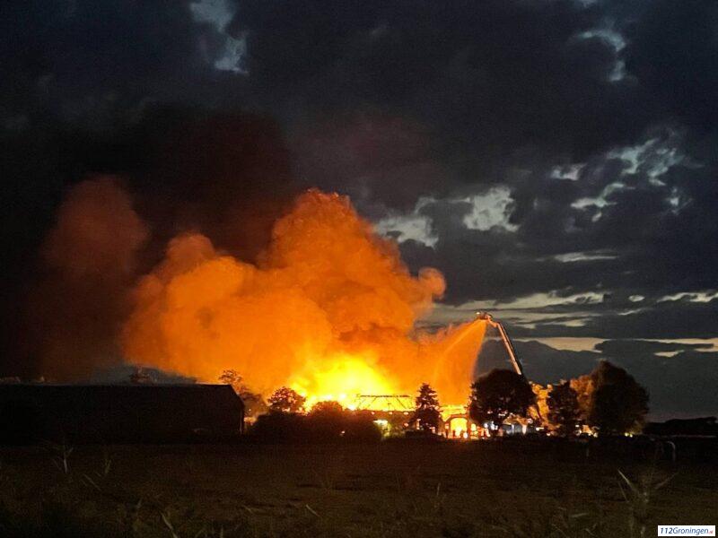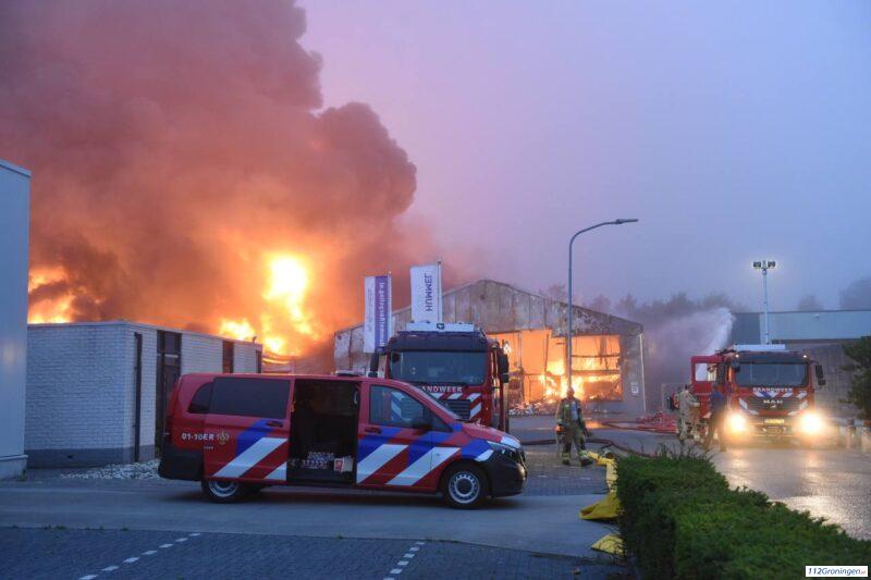 Brandweer Grootegast en Zuidhorn en Grijpskerk assisteren bij zeer grote brand in Surhuisterveen (Video)