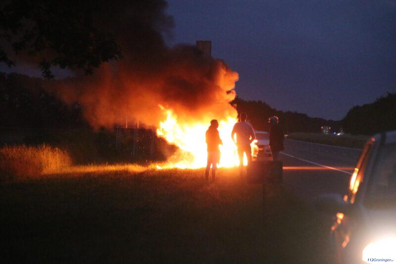 Zuidbroek – Op de A7 ter hoogte van Zuidbroek is donderdagavond een personenauto volledig uitgebrand.