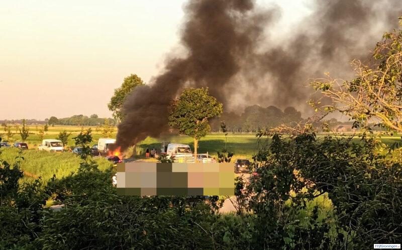 Auto in lichterlaaie op A7 bij Zuidbroek