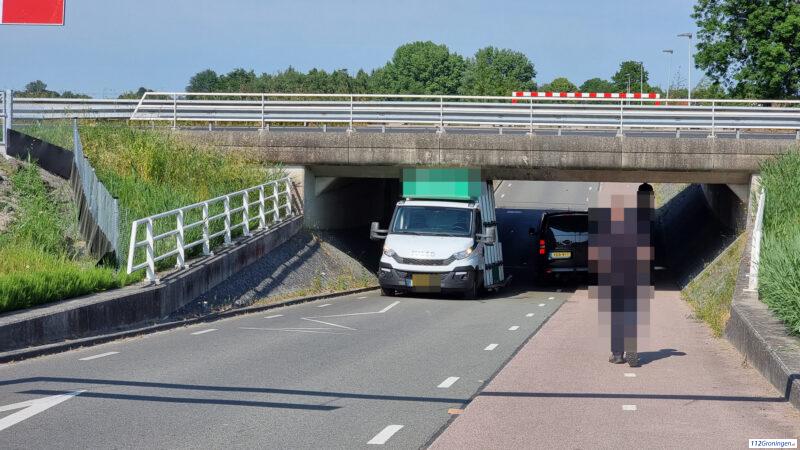 Groningen- Onder de N7 aan de Olgerweg zat donderdag rond 16:45 uur opnieuw een bedrijsbusje