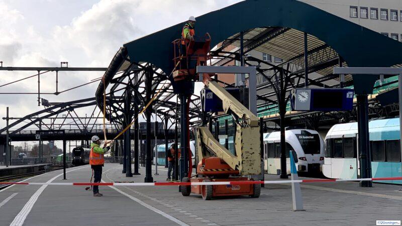 Groningen – Op het Hoofdstation van Groningen is vrijdagmiddag een stuk van de overkapping losgewaaid