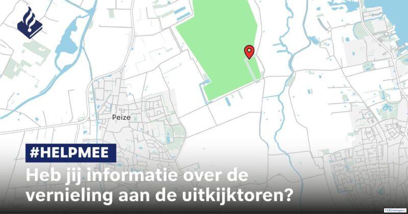 Peize – Afgelopen donderdag zijn er vernielingen gepleegd aan de uitkijktoren aan de Drentsedijk in