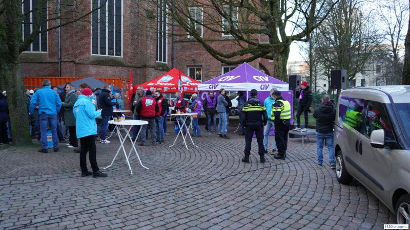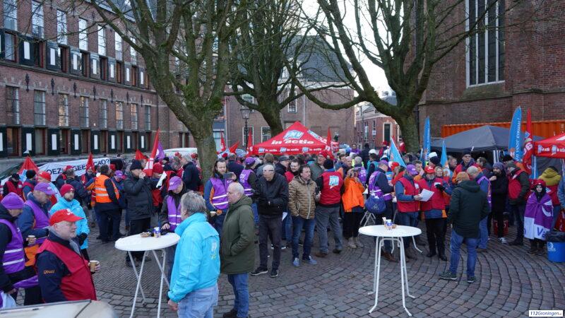Groningen – Bij het provinciehuis in de binnenstad van Groningen staken woensdagmorgen de mensen van