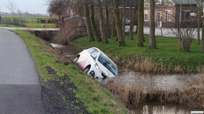 Auto te water aan de Stitswerderweg in Stitswerd