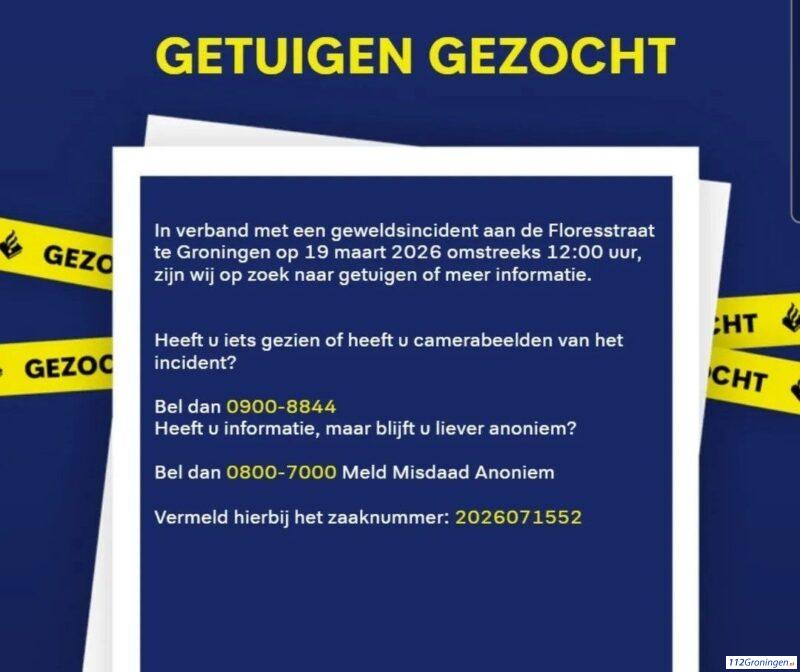 Groningen – De politie is op zoek naar getuigen van een geweldsincident aan de Floresstraat