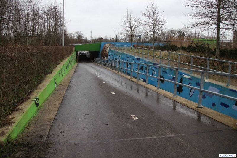 Haren – De fietstunnel onder de A28 bij de P+R in Haren is sinds maandagavond