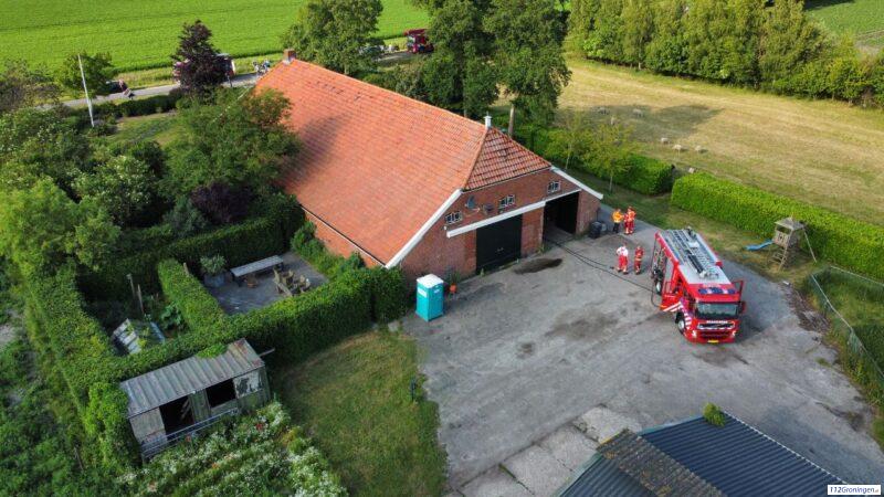 Rookontwikkeling vanaf dak bij boerderij buiten Winschoten