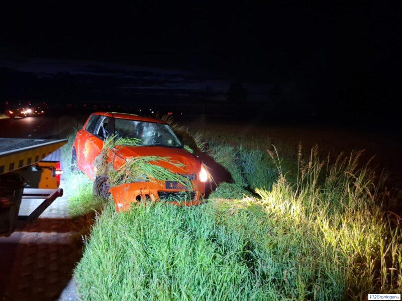 Oostwold – Op de Oudlandseweg in Oostwold is vrijdagavond rond 22:30 uur een auto in