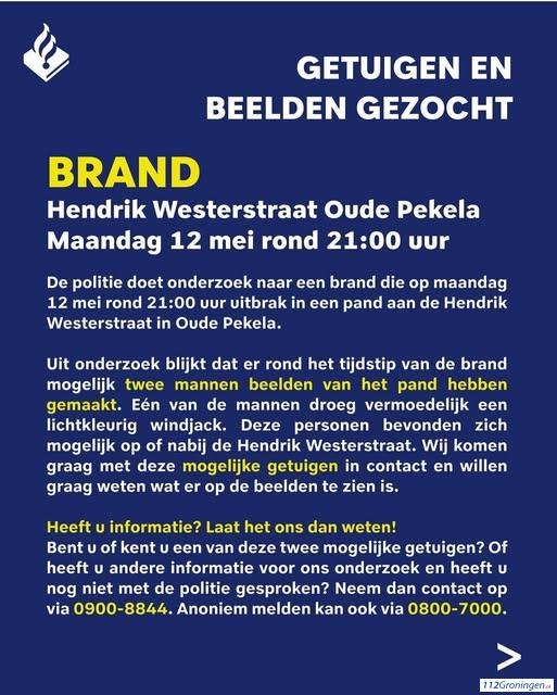 Oude Pekela – De politie zoekt getuigen van de brand aan de Hendrik Westerstraat bij