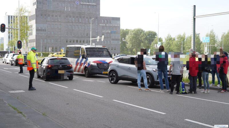 Groningen – Voor de ingang van parkeergarage Euroborg aan de Boumaboulevard is een verkeersregelaar geraakt
