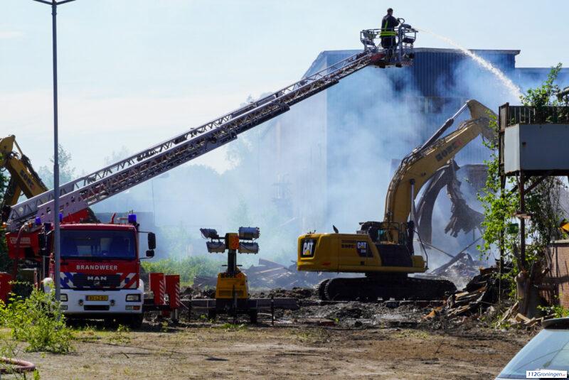Oude Pekela – De brandweer is dinsdag nog steeds volop bezig met het blussen van