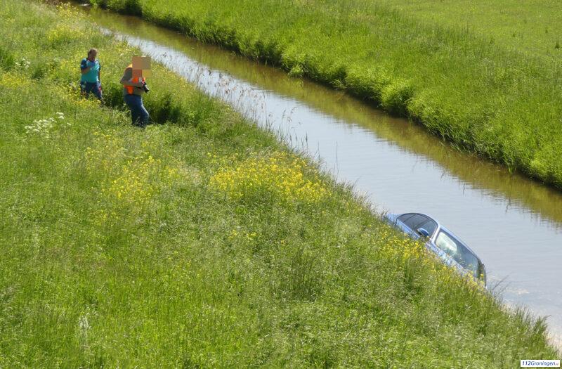Automobilist rijdt sloot in op Molenweg in Wedde