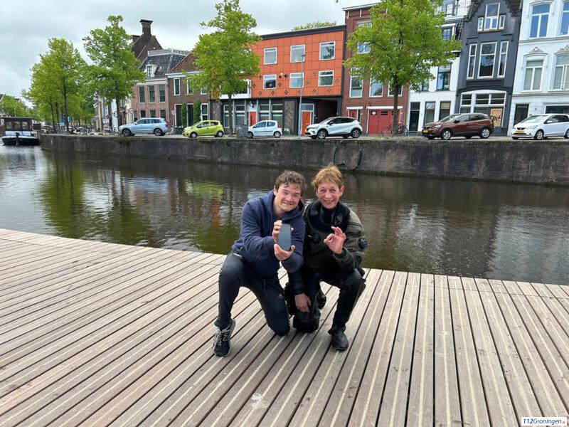 Opnieuw een telefoon succesvol uit het water gehaald bij de Turfsingel