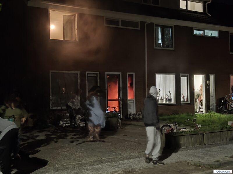 Middelbrand in woning aan de Spijkerboor in Haren, gezin gered via ladder (Video)
