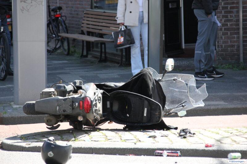 GRONINGEN – Zaterdagmiddag is op de Korreweg in Groningen een scooterrijder gewond geraakt bij een