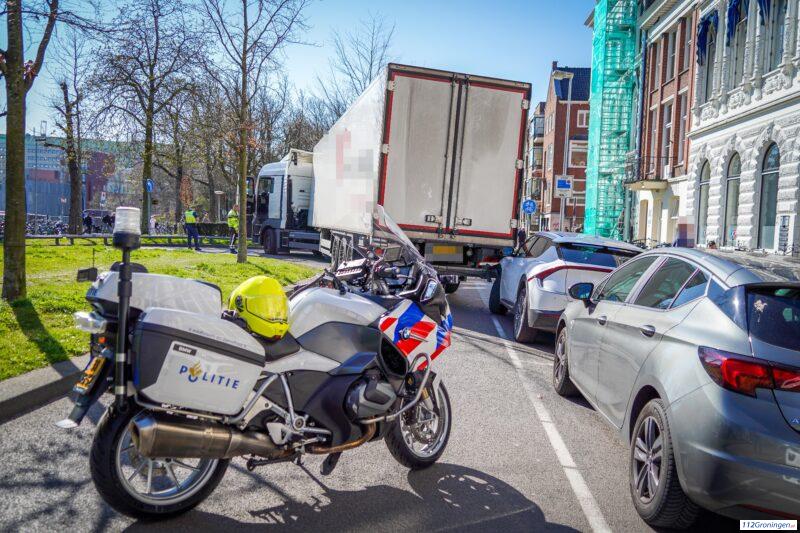 GRONINGEN – Een vrachtwagen en auto zijn vrijdagmiddag met elkaar in botsing gekomen op de