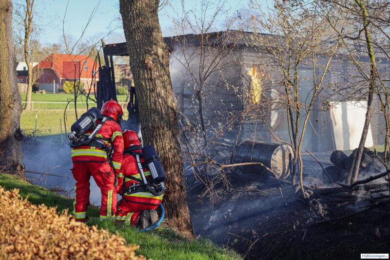 Brand in schuur met zwaar vuurwerk in Marum (Video)
