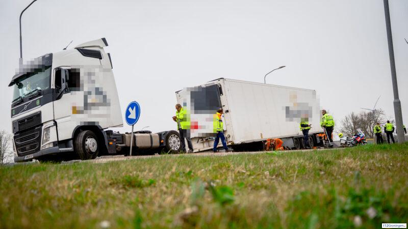 Vrachtwagen verliest trailer bij Wagenborgen
